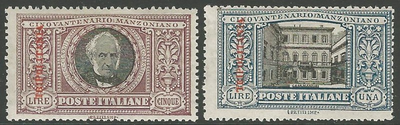 TRIPOLITANA – * Sassone 11/16, Yvert idem (Manzoni) 2 irrelevantes valores com pontos de ferrugem, demais limpos – 750 Euros…