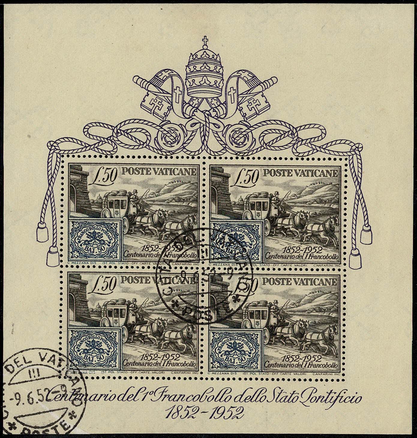 VATICANO ◉ Bloco 1 (Centenário do Selo ) – 150 Euros.