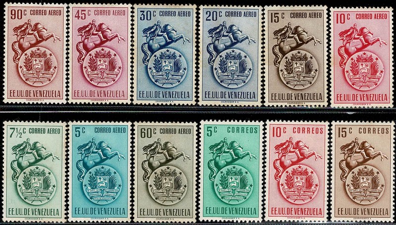 * VENEZUELA – 361/365 + Aéreos 361A/367A – Série completa – Maioria com pontos de ferrugem – 200 Euros.