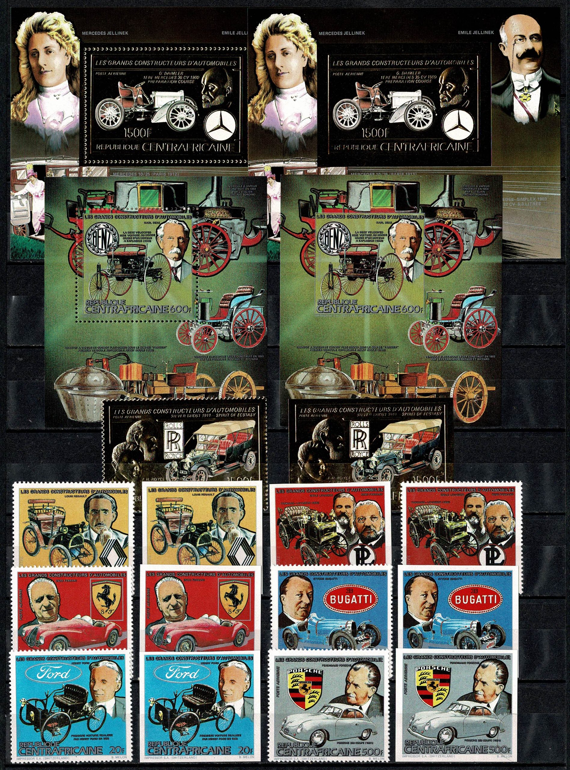 Automóveis/Automobilismo ** Centroafricana – Ano 1983 – Michel 943/48 A e B Bloco 237A e B 950A e B Blocos 245A e B – Apenas 1 bloco com ponto de ferrugem na margem superior – 133 Euros.