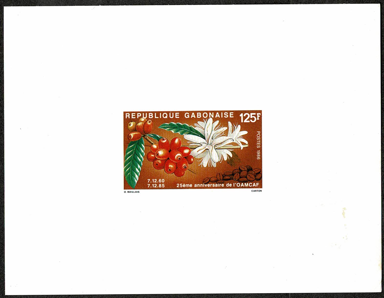 CAFÉ (*) Gabão – Ano 1986 – “Prova” no tamanho 13x10cm do selo Yvert 601..