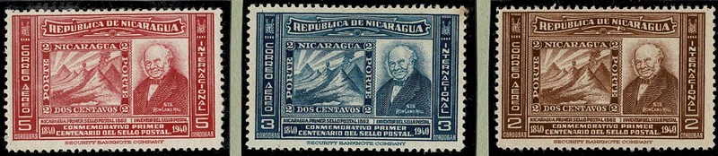 CENTENÁRIO DO SELO – (*) Nicaragua – Yvert A225/227 – Série completa – 130 Euros..