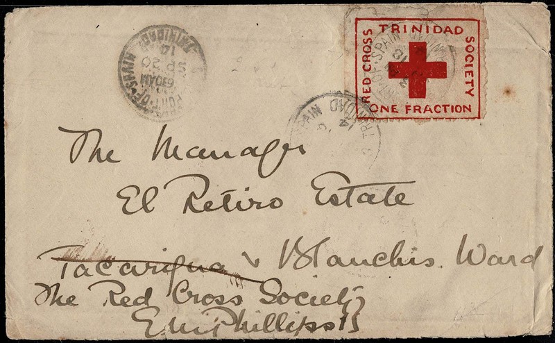 CRUZ VERMELHA – TRINIDAD – Ano 1914 – Envelope impresso com selo Yvert 87A (Stanley Gibbons # 157) circulado internamente com chegada e data 18.9 – Só autorizado circular por 1 dia !! Dentro da peça, propaganda em prol da Cruz Vermelha. No catalogo Stanley Gibbons cotava 225 Libras em 2008, isto como selo carimbado. Seguramente sobre envelope o preço é maior. Selo irregular na parte superior/lateral direita, até em função dos seus picotes serem extremamente irregulares.