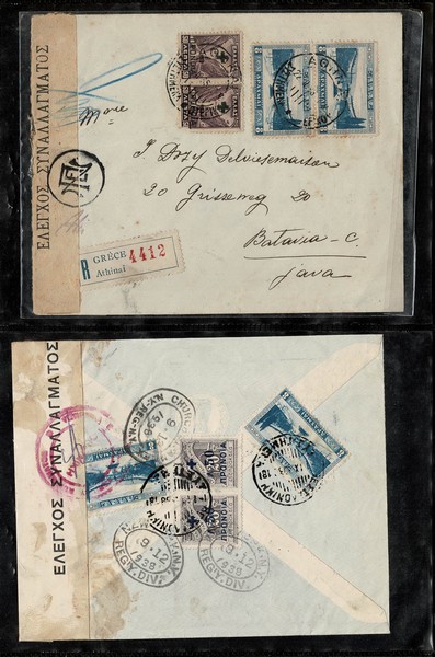 ESPORTES (SÓ OLIMPÍADAS) Ano 1934 – Grécia – Selo Yvert 404 (Estádio Olímpico) Lote contendo 62 selos com carimbo + 4 sem carimbo (par gomado e 2 selos isolados sem goma) + 8 envelopes circulados (parte registrados) sendo 2 em franquia isolada e os demais com franquias mistas (1 só frente) 3 estão censurados, sendo 1 deles circulado para JAVA ! com chegada. Só os selos cotam 700 Euros + as 8 peças. Acompanha ainda foto de divulgação e suplemento de revista, ambos com a imagem alusiva