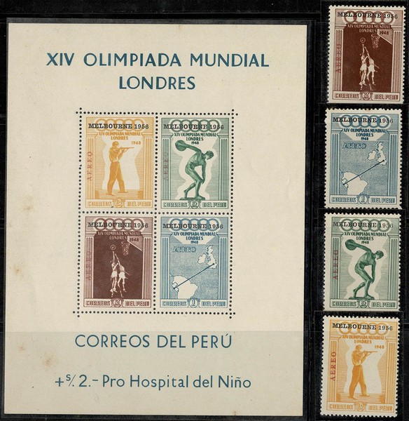 * ESPORTES – Olimpíadas – Ano 1956 – Perú – Yvert Aéreos 116/119 + Bloco 2 – 62 Euros