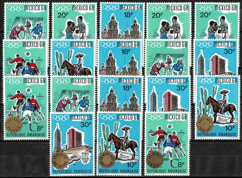 ESPORTES (SÓ OLIMPÍADAS) **/* Ano 1968 – Ruanda – Série completa Yvert 277/294 – 60 Euros..