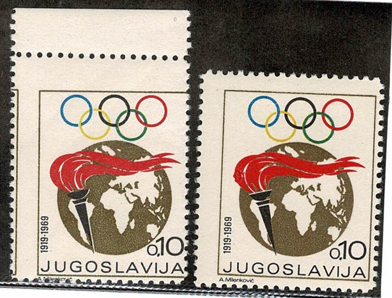 ESPORTES (SÓ OLIMPÍADAS) ** Ano 1969 – Iugoslávia – Yvert 1256 com variedade: Deslocamento do picote vertical