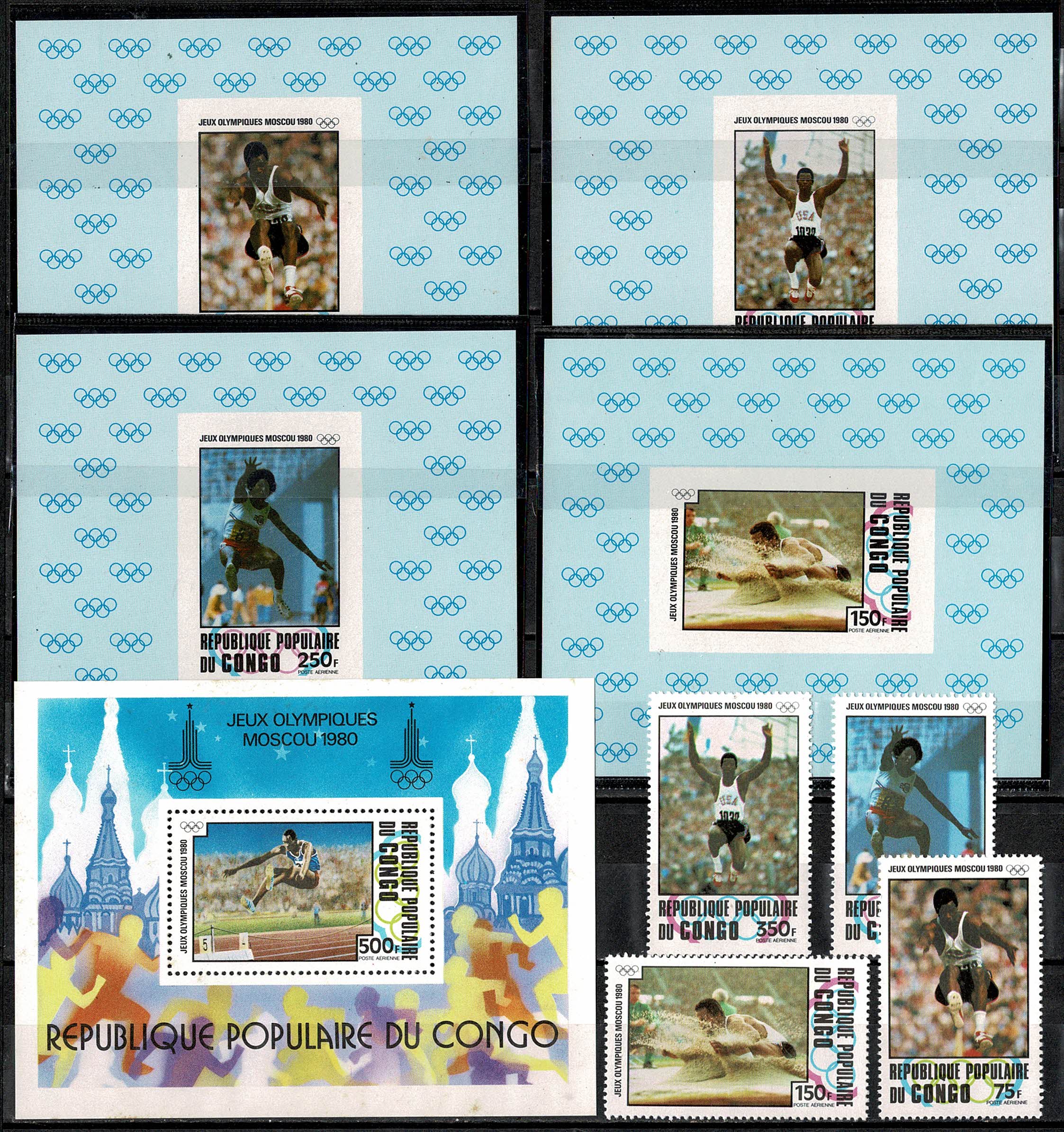 ESPORTES (SÓ OLIMPÍADAS) ** Ano 1980 – Congo – Yvert Ae 269/272 Bloco 22 os selos em Blocos individuais. Um ou outro pode ter minimos pontos de ferrugem ..