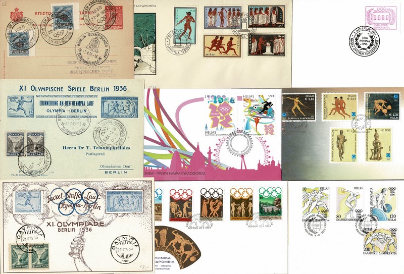 ESPORTES (SÓ OLIMPÍADAS) SÓ GRÉCIA – Conjunto dentro de 2 pastas tipo catálogo, contendo 107 peças filatélicas em geral, maioria DIFERENTES. Parte delas estão homenageando outras olimpiadas, ou aniversários etc. De qualquer maneira, todas são Gregas. Começa em 1896 (carimbo homenageando ao Olimpíadas modernas) e vindo até Londres 2012. Incluso 2 peças de 1936, com carimbo de época e enviados à Berlin, com carimbo de chegada também alusivo. Muito boa qualidade geral, visto que a quase totalidade delas foi adquirida no exterior, a exemplo do lote abaixo, cuja origem é do mesmo dono. Aqui saindo na base de apenas R$ 6 por peça, que é muito vantajoso até para começar uma coleção.