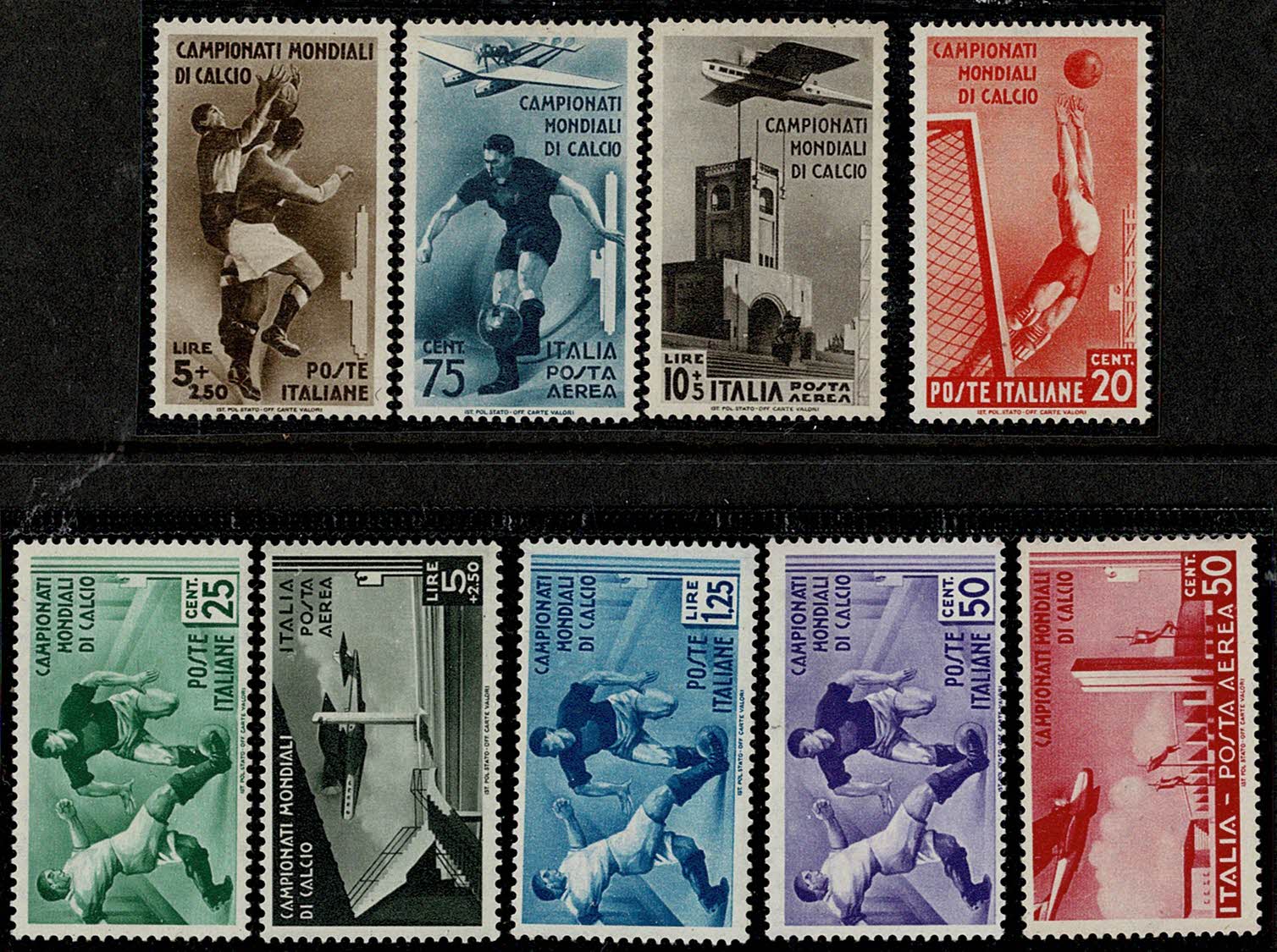 ESPORTES (SÓ FUTEBOL ** Italia – Ano 1934 – Yvert 339/343 Aéreos 64/67 – Série completa. Copa do Mundo – 600 Euros no catálogo Yvert e 800 Euros no catálogo Sassone. Escasso aparecer aqui neste estado…