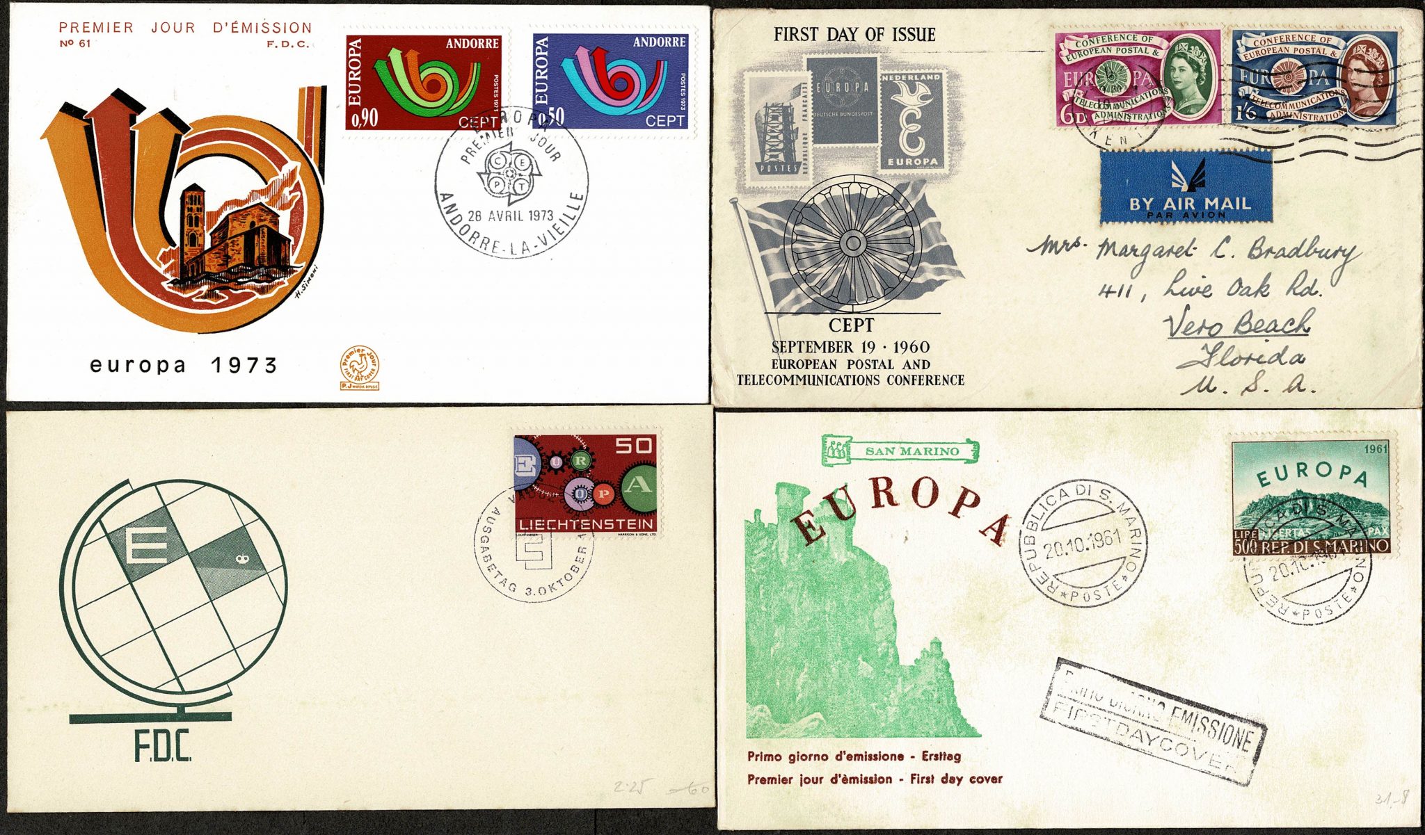EUROPA CEPT – SÓ FDCs – Coleção com 160 Fdcs DIFERENTES e de 34 países diferentes. Anos 1960 a 2010. Incluso alguns com Blocos. O preço pedido de R$ 2 por peça, em muitos caso sequer paga o selo usado…