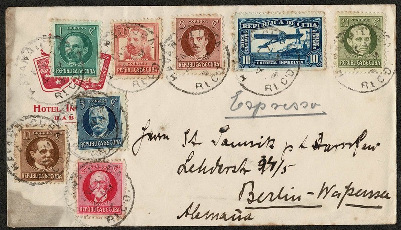 FARÓIS – Cuba – Ano ? Envelope expresso circulado para a Alemanha. Selo Yvert Expresso 4 ou 5 ? 7 + outros selos regulares. Mancha na lateral esquerda.