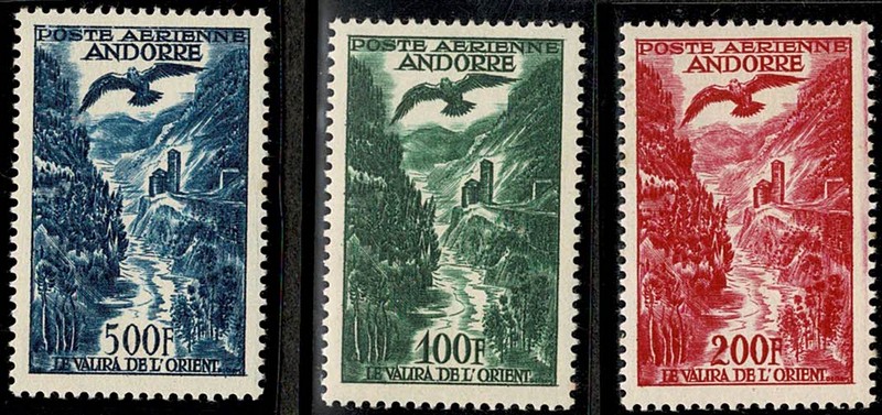 FAUNA */** Andorra Francesa – Anos 1955/1957 – Yv Aéreos 2/4 (Aves) – Série completa – 160 Euros