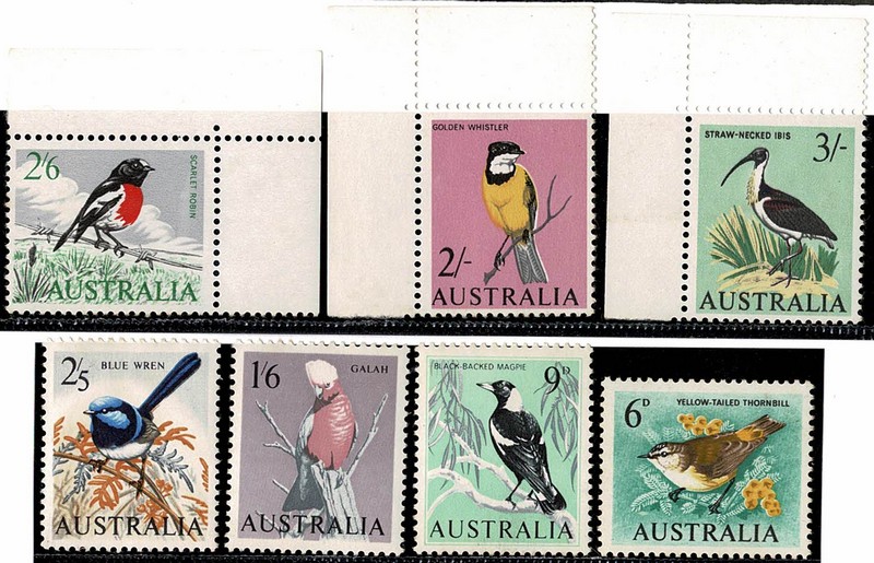 FAUNA * Australia – 1963/1965 – Yv 291/294 + 296/299 – Aves – Parte de fauna da série – 51 Euros.