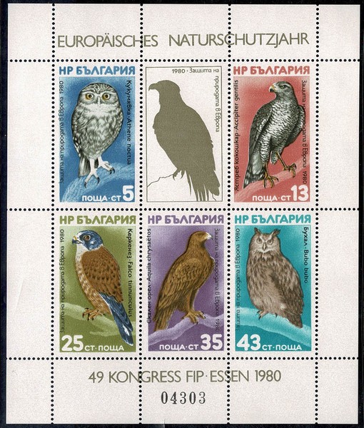 FAUNA ** Bulgaria – 1980 – Yvert Bloco 95B (Aves de rapina) – 65 Euros.