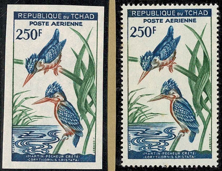 FAUNA * Chade – Ano 1961/63 – Yvert AE 5 (Ave) com e sem picote..