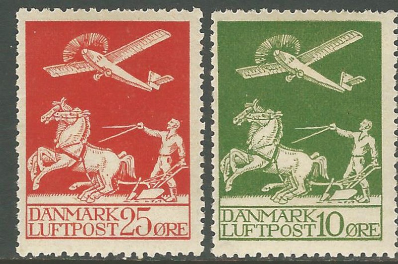 FAUNA * Dinamarca – Yvert Aéreos 1/5 (Cavalo/Avião) Série completa bem limpa, sem ferrugem e só com charneira – 425 Euros…