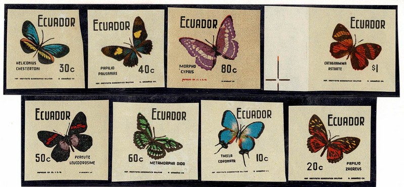 FAUNA ** Ecuador – Yv 844/851 (Borboletas) Variedade: Série completa SEM PICOTE