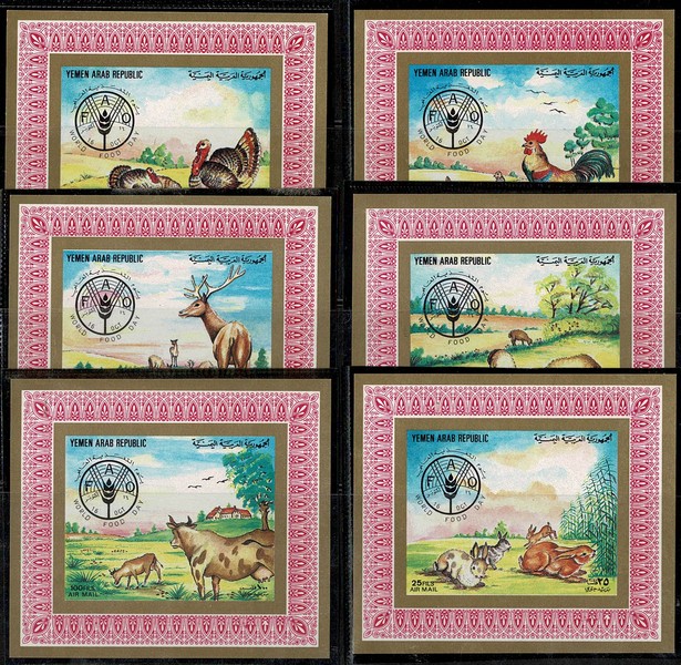 FAUNA ** Iemen (Republica Arabe) – 1982 – Aéreos 190/195 (domésticos) em 6 mini blocos individuais – Não consta no Yvert e sem cotação no catálogo Michel.