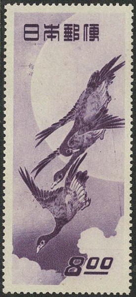 FAUNA ** Japão – 1949 – Yv 437 (Patos) – 175 Euros pelo Yvert e 25.000 Yens (R$ 1.250) pelo catalogo Sakura do ano 2006.