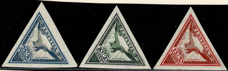 FAUNA * Letonia – Yvert Aéreos 13/15 (Aguia) Série completa sem picote e muito limpa, sem ferrugem e só com charneira – 55 Euros +