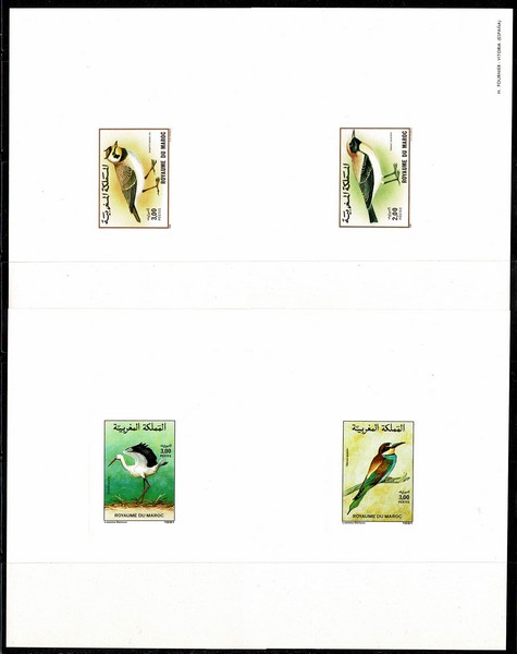 FAUNA (*) Marrocos – Anos 1989 e 1991 – 2 Séries completas em “Provas” medindo 13x10cm – Yvert 1073/74 e 1110/11 – Ambas Aves…