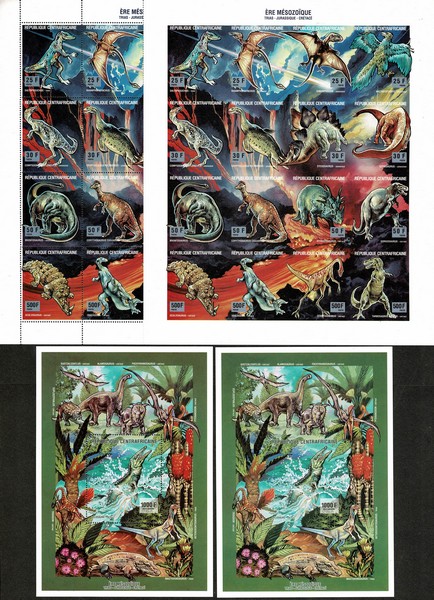 ** Fauna (Pré Historicos) Ano 1993 – Centroafricana – Yvert 908/923 Bloco 110 – com e sem picote – 93 Euros pelo catálogo Michel.