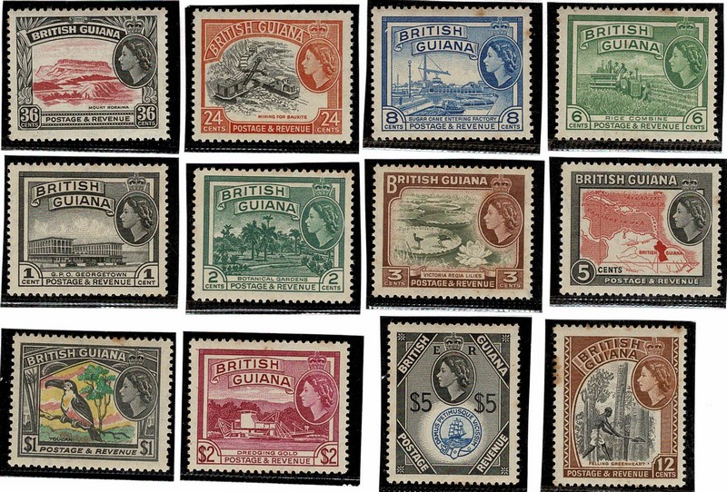 MINERALOGIA * Guiana Britânica – Yv 185/199 (Ouro, Bauxita e diversos outros temas) Série completa – 80 Euros.