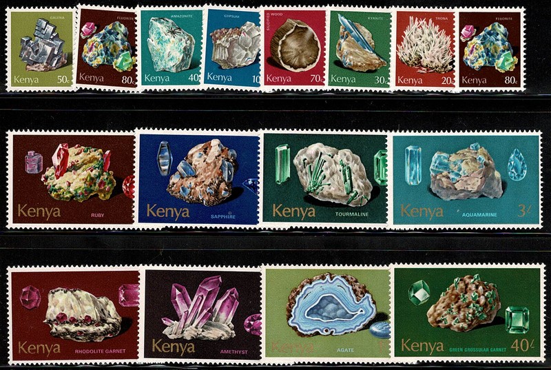 MINERALOGIA** Kenia – Ano 1977 – Yv 95/109 – Série completa – 65 Euros.