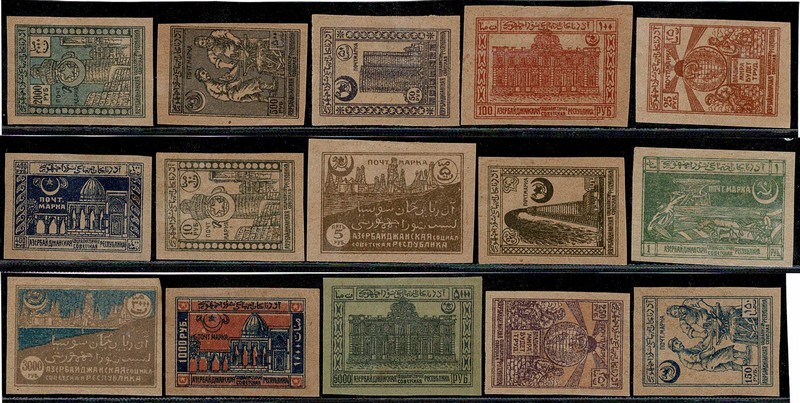 PETRÓLEO (*) Azerbaijão – Anos 1921/1922 – Yvert 30/44 – Série completa. Incluso vários outros temas.