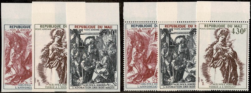 ** Pintura – Ano 1978 – Mali – DÜRER – Yvert Aéreo 346/348 completo com e sem picote