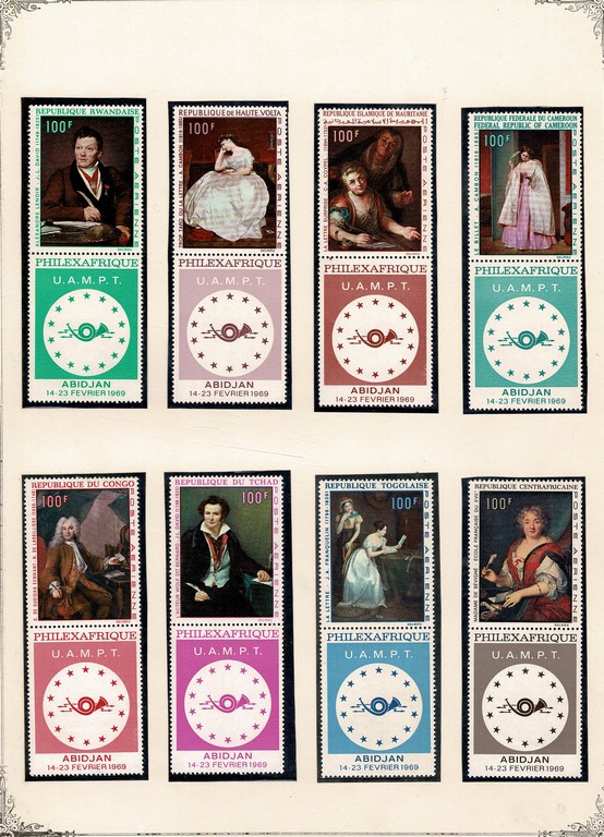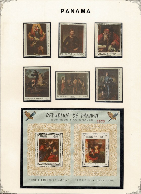 **/* PINTURA – 2 CLASSIFICADORES FOLHAS AVULSAS – Belo conjunto/coleção com cerca de 160 itens DIFERENTES entre selos isolados, séries completas (muitas com seu respectivo bloco) Mini folhas além de 8 PROVAS DE LUXO (Países Franceses) Parte está afixado em folhas quadriculadas e identificado pelos países e parte dentro de 2 classificadores, sem ordem, mas pelo menos as séries estão agrupadas junto com seus blocos e alguns separados pelos pintores. Grande diversidade de períodos e países. Notamos alguns itens com pontos de ferrugem um pouco acentuados para este tipo de material. No meio, temos uma marcante variedade, que é um Bloco do Panamá (carimbado) com dupla impressão das legendas, sendo uma invertida. Um bom inicio de coleção, com bom valor de catálogo.