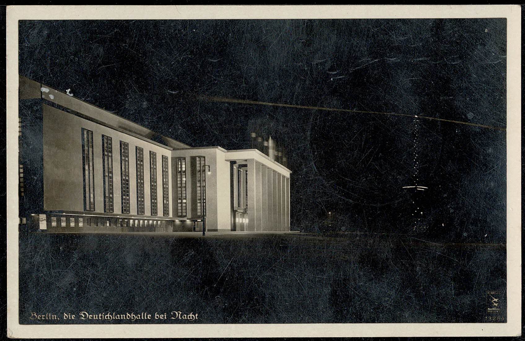 2ª GUERRA – Ano 1938 – Reich – Cartão Postal figurando o “salão do povo” em Berlin, à noite. 2 selos com diferentes carimbos. Muito bom estado