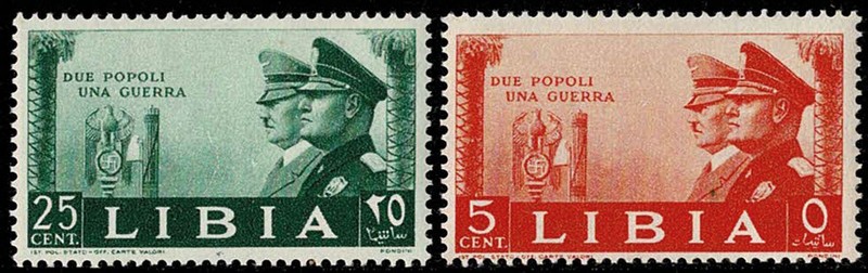 2ª GUERRA – ** Ano 1941 – Libia Italiana – Série completa Sassone 171/177 Aéreo 45 (Fuhrer/Mussolini) Muito raro aparecer aqui nesta qualidade – 80 Euros ..