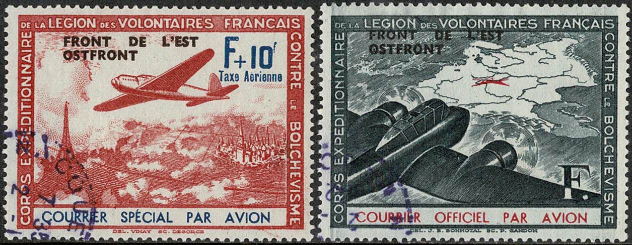 2ª GUERRA ◉ Ano 1942 – LEGIÃO FRANCESA DE VOLUNTÁRIOS (LVF) Michel IV/V – Série completa com carimbo de favor. Expertizado Tust – 150 Euros