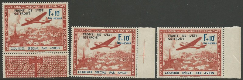 2ª GUERRA ** Ano 1942 – LEGIÃO FRANCESA – VARIEDADES – 3 diferentes variedades na sobrecarga, todas constando do catalogo Michel Especializado: V/II, V/III e V/V – Origem e qualidade Européia – 400 Euros
