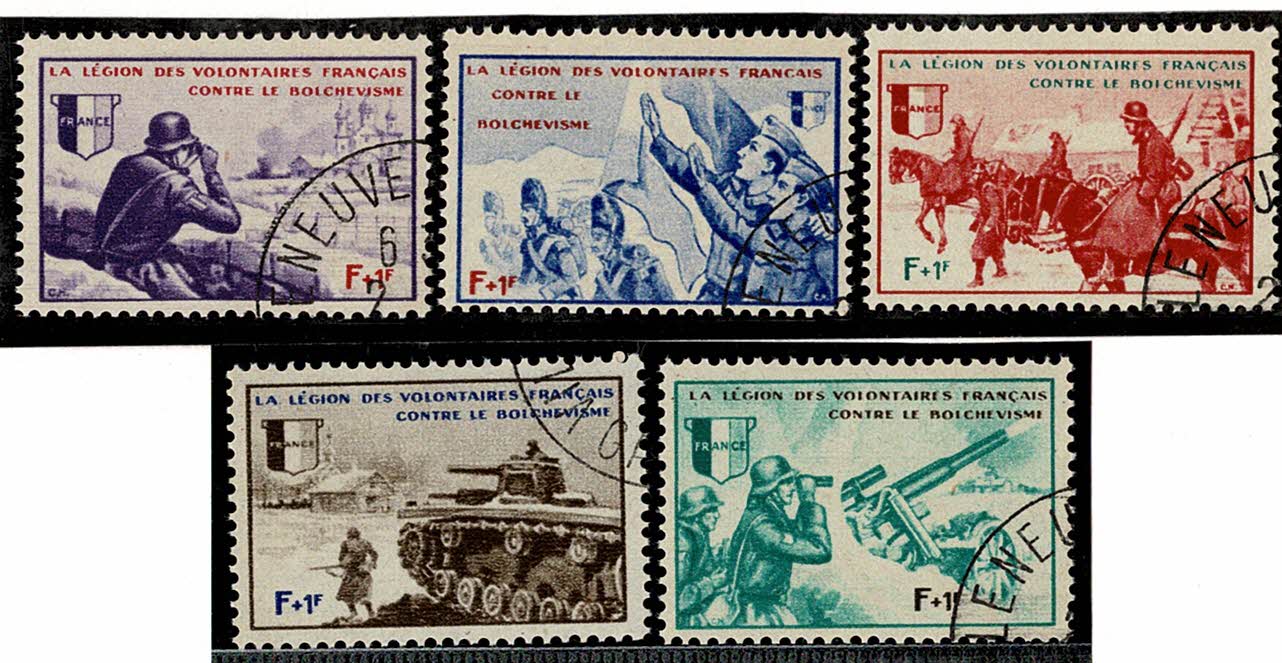 2ª GUERRA ◉ Ano 1942 – LEGIÃO FRANCESA DE VOLUNTÁRIOS (LVF) Michel VI/X – Série completa com carimbo de favor