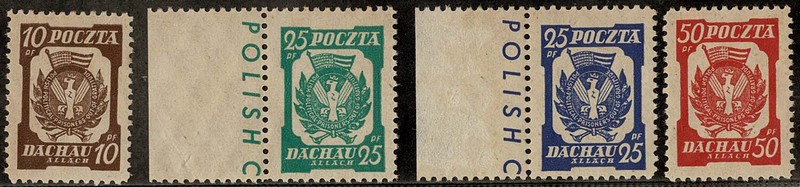 2ª GUERRA **/* Ano 1945 – POLONIA – Série completa de 4 valores, pró vítimas do Campo de Concentração de Dachau. Sem poder de franquia. Constam do catálogo Fischer ano 2010, pagina 238