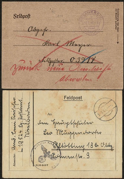 2ª GUERRA – FELDPOST – Alemanha Reich – Correio de Campanha (Correspondência de soldado para a familia e vice-versa) Tipo Carta Bilhete – Lote com 12 diversas para estudo ..