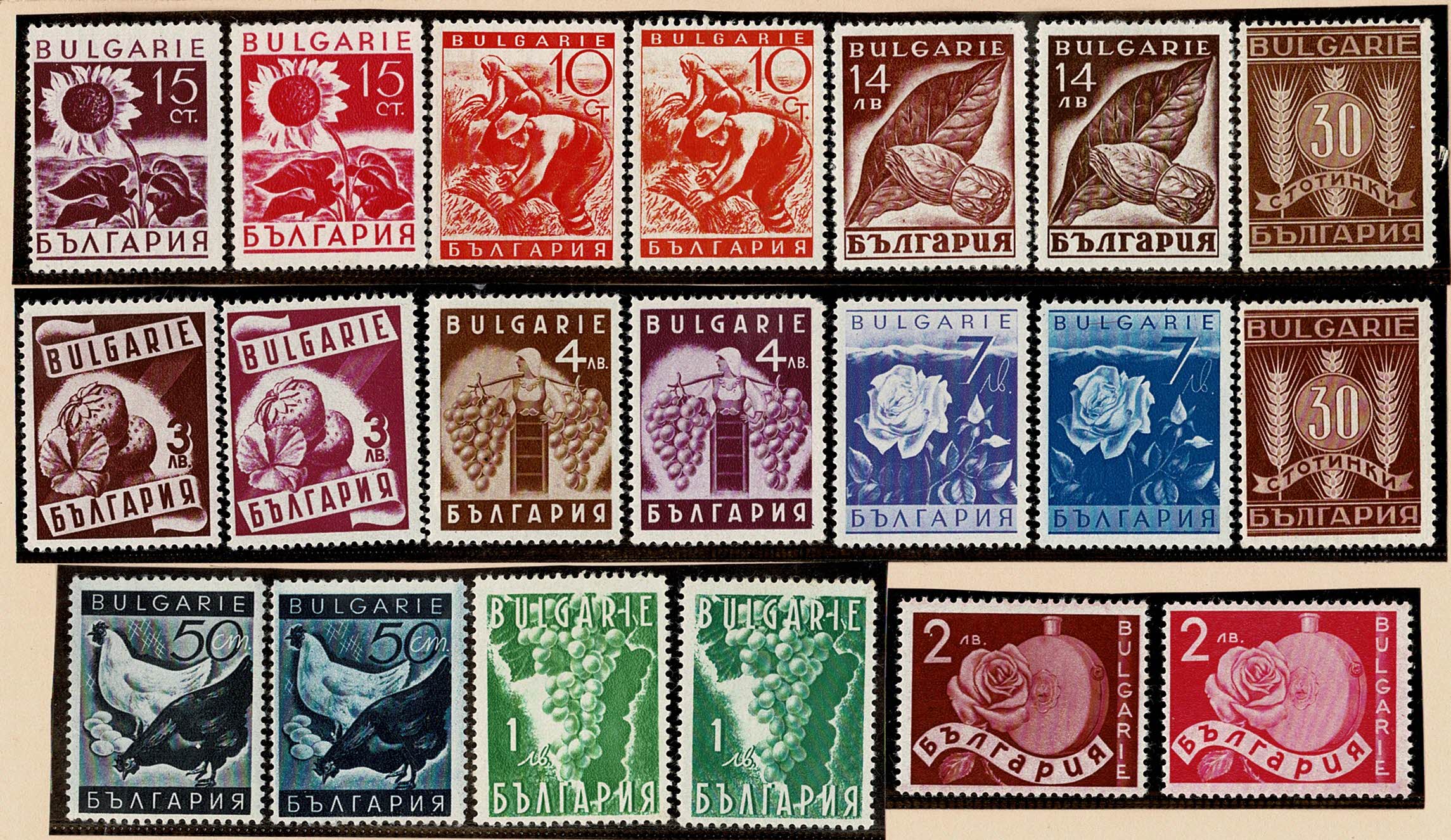 UVA/VINHO * Bulgária – Ano 1938 – Yvert 299/318 (incluso Rosas e outras culturas) Série completa, maioria bem limpos….