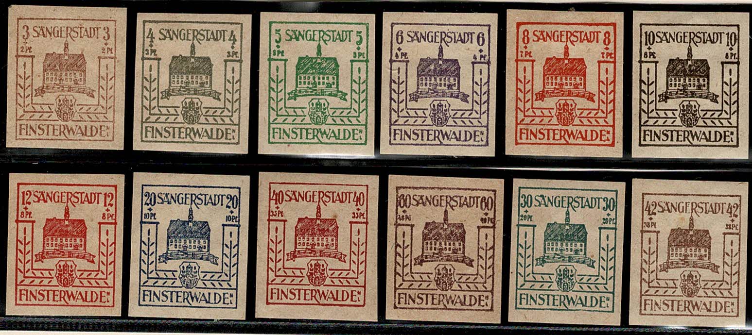 SELOS Nº 1 – ** FINSTERWALDE (EMISSÃO LOCAL PÓS 2ª GUERRA) Michel 1/12 – 1ª Série completa