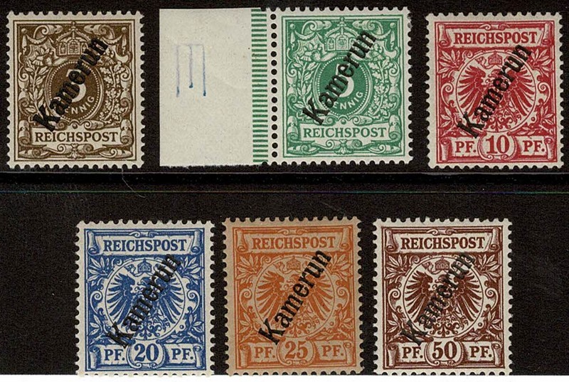 * KAMERUN (Colônia Alemã) – Michel 1/6 – 1ª Série completa. Limpos, só com marca de charneira e sem ferrugem – 80 Euros +