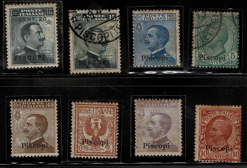 ◉/* PISCOPI (Egeo) Yvert 1/8 – 1ª Série completa mista.