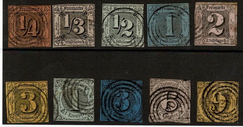 ◉ THURN & TAXIS (Estado Alemão) Michel 1/10 – 1ª Série completa. Sem defeitos no papel. Margens conforme imagem – 410 Euros