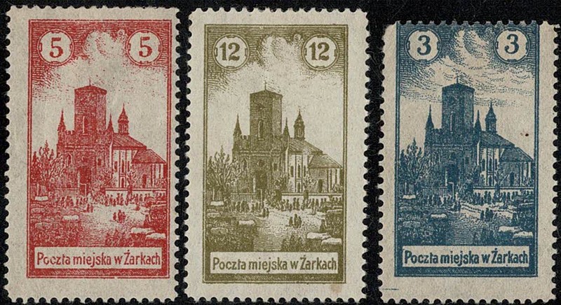 * ZARKI (Polonia – Local) Catalogos Michel e Fischer 1/3 – 1ª série completa. Não consta do Yvert – 270 Euros