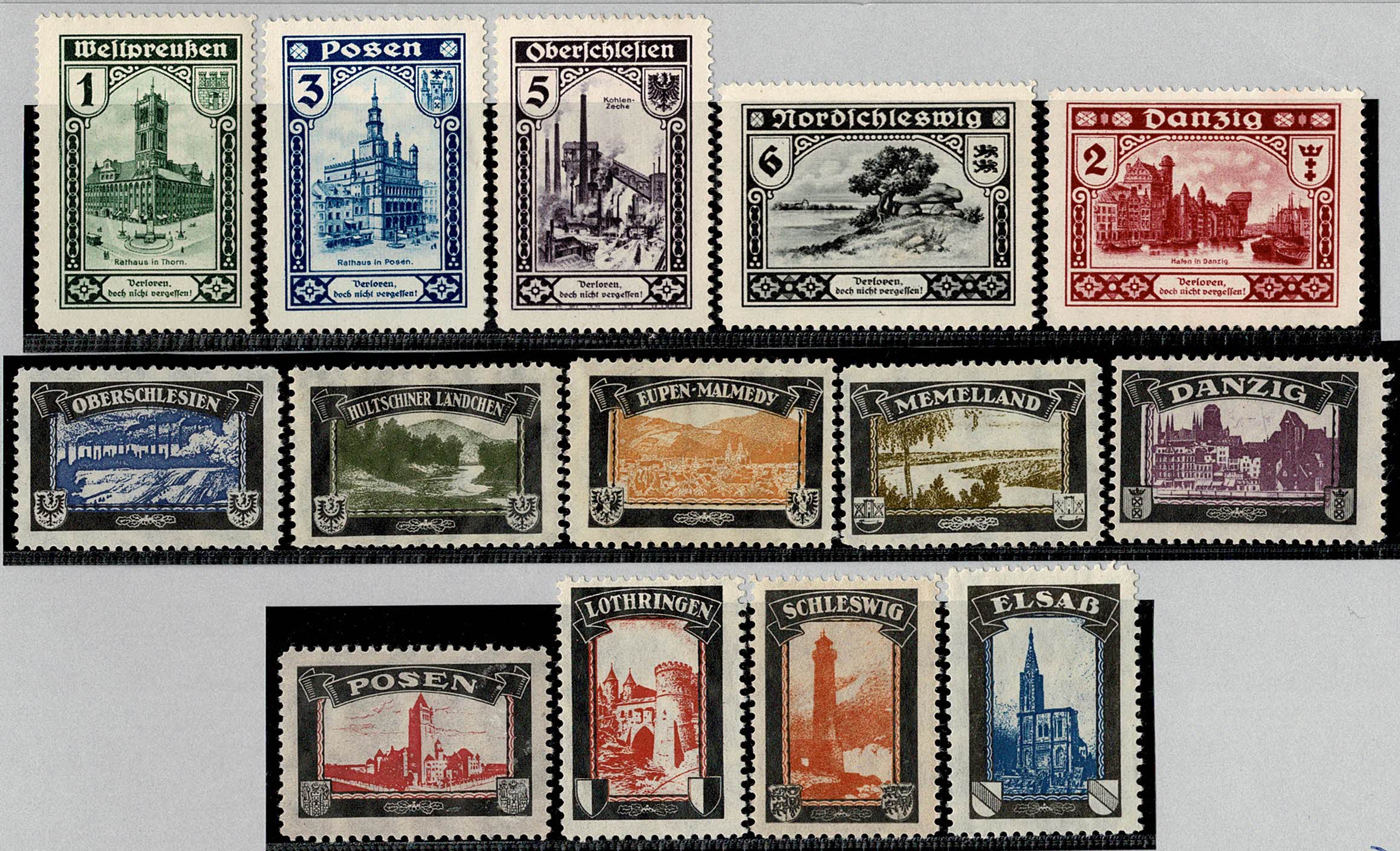 (*)/* ALEMANHA – 14 diferentes, de 2 diferentes séries, figurando cidades alemãs. Não sabemos se estão completas. Aparentemente anos 20