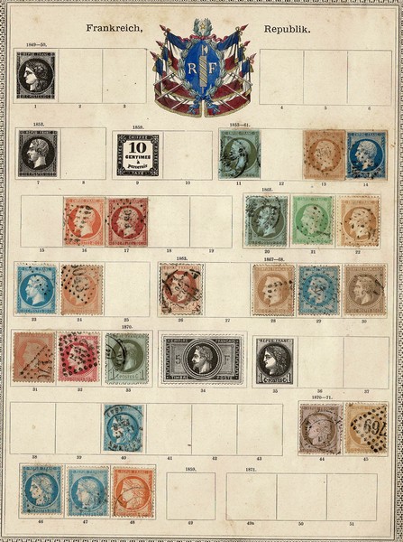 CONTINENTE EUROPEU SÓ SÉCULO 19 – COLEÇÃO contendo pouco + de 700 selos DIFERENTES, predominando os carimbados/usados (Sem Alemanha) Afixados com charneiras de papel ou colados diretamente em antigas folhas impressas de album datado do século 19. Destacam-se a Austria, com 3 selos da 1ª série, Holanda com a 1ª série completa, Bélgica Yvert 2 e muitos outros valores medianos. Logicamente a qualidade é mista neste tipo de coleção. Incluso alguns recortes de inteiros postais que tinham lugar nestes antigos albuns impressos
